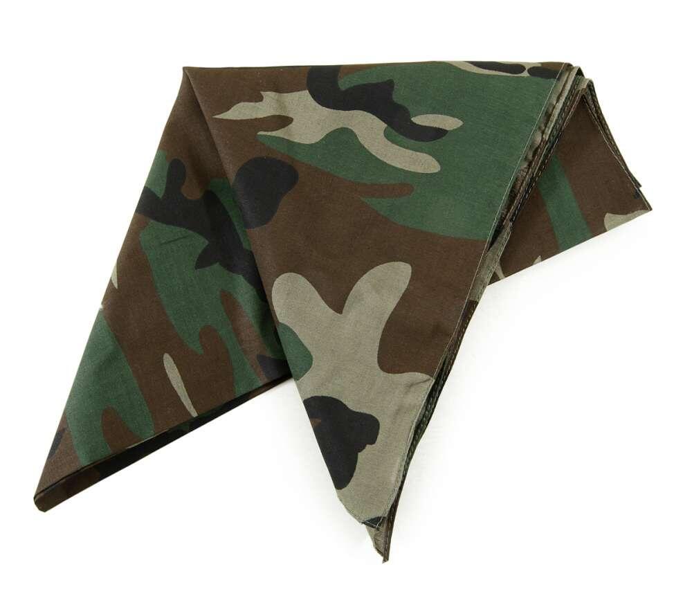 – Perfekt for dem som spiller kun med briller for å beskytte ansiktet – Kult hodetørkle Størrelse: 53 x 53 cm Woodland Camo mønster