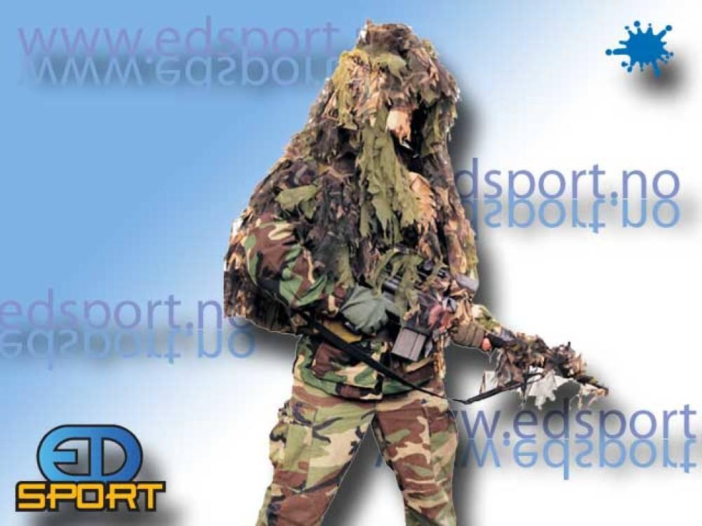 «…………..This is a synthetic ghillie suit that covers the head and torso. Designed to wear over an alice or back pack. More than 500 synthetic camo-leaves are tied into a mesh cloak that can be worn over any clothing. The entire suit only weighs 1 pound and is cooler than traditional ghillie suits. The CHAMELEON has outstanding blending qualities and comes with extra leaves and burlap to add to better match your specific terrain. ………»