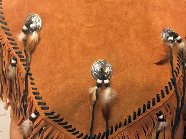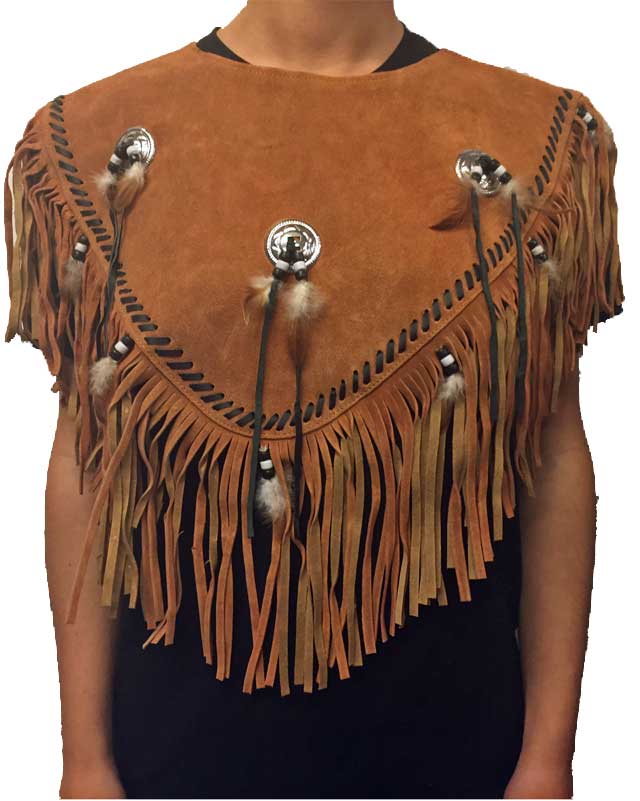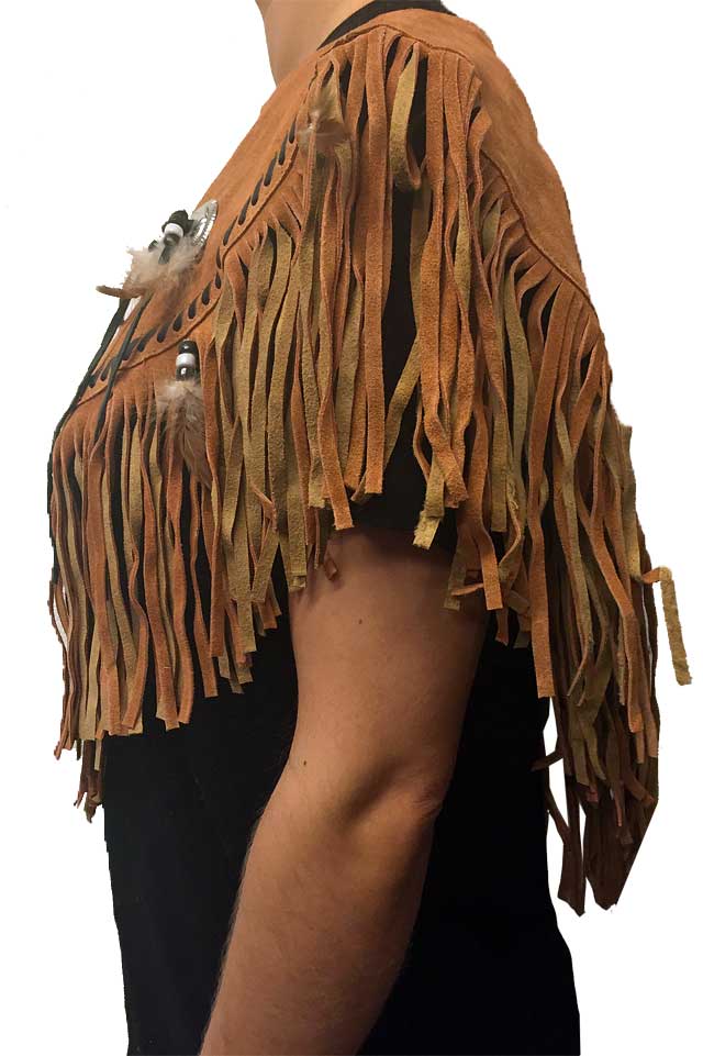 Stilfull liten poncho med indianerinspirert design. Ponchoen er produsert i solid skinn. Flere fine detaljer..