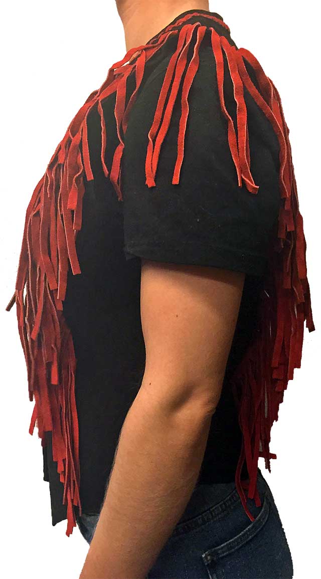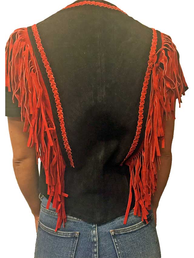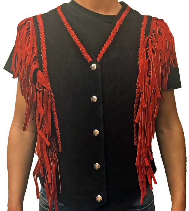 Stilfull vest med indianerinspirert design. Vesten er produsert i solid skinn. Flere fine detaljer. Innvendig foret