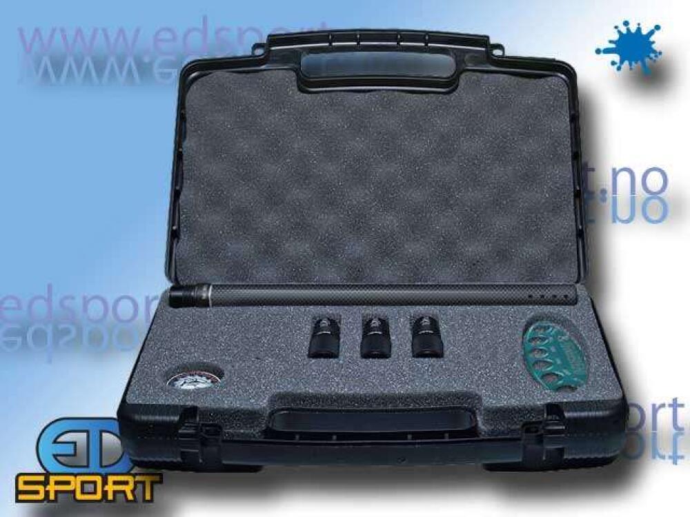 Dette løpet i matt utvendig behandling kommer med 3 bakstykker med boring: .683 .686 .690 Løpet er spiralformet på innsiden. Dette vil gi ballen en effektiv spinn – som igjen gir en rettere ballbane. Husk maks FPS bør være 265FPS. Både bakstykkene og fronten er utskiftbar. Medfølgende koffert har plass til alle deler. Det er også med ballmåler og smøring for løpsgjengene