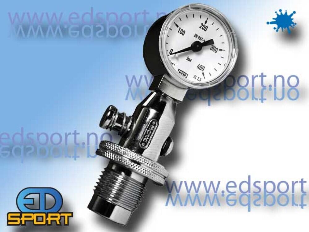 Trykktester for tilkopling og avlesing av trykk på dykkeflaske / luftbankTrykkmåling: 0-400 bar