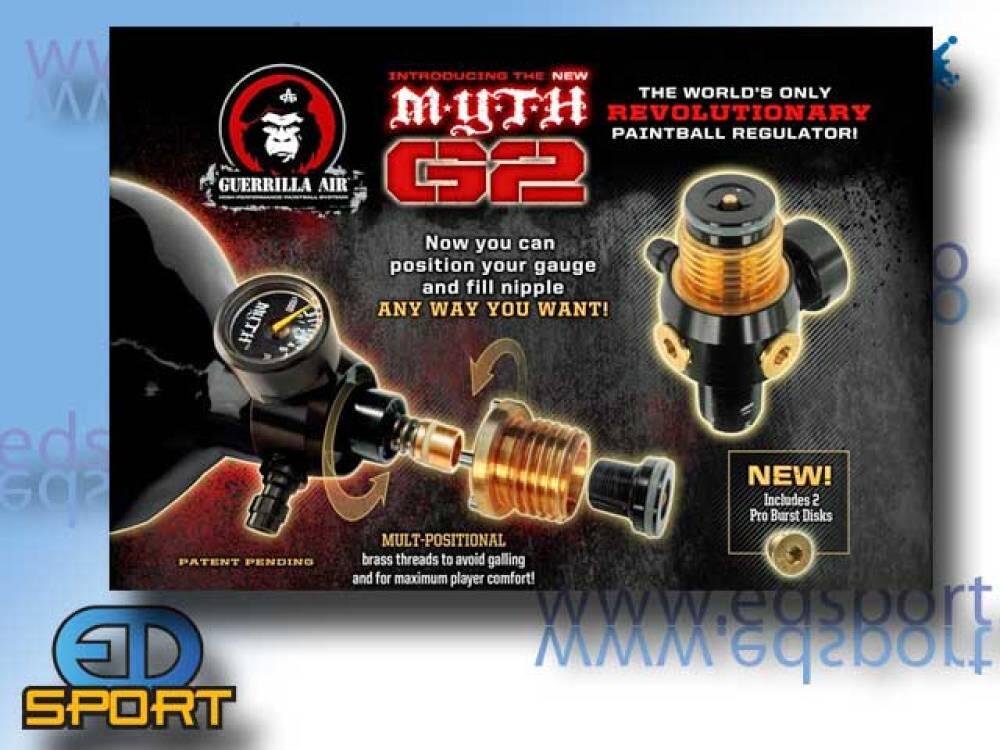 «………Guerrilla Air did a limited release of Myth G2s to top professionals in the paintball industry insuring it met the design criteria it was intended for.We are very excited about having a new addition to the MYTH family of regulators that sets a new standard no other regulator out there can achieve said Dan Colby and therefore it is only fitting that the best players get a chance to put it through its paces firstWe found that some kids did not understand how our internal high tech low side safety worked said Dan Colby so we added an external one as well to put everyones mind at ease. Now your Myth will have THREE safeties built in one high pressure one low pressure and one internal low pressure. Plus they are Pro Burst disks and therefore flush with the reg. When we do things we like to do it rightThe Guerrilla Air MYTH G2 regs are hands down the best on the planet. When I play with mine I barely even notice its there They are the smallest lightest sleekest and safest. Every serious player should have one of these.Alex Fraige Team DynastyThe new MYTH G2 regulator is truly amazing and a great new piece of required gear for any player. Playing long scenario games I need a 68ci tank but I have always hated the length. With the new MYTH G2 my tank feels like Im using a 45ci. And I love the awesome new feature of being able to adjust the position of the collar meaning no more gauges uncomfortably bumping into my wrists Add to that the benefit of a totally user-serviceable reg and you have one incredible piece of equipment for all players from the woods to the arenas.David Thompson Team Capital OffenseI love it Finally no more gauges cramping my style These regs are so revolutionary I am going to see what else they can do. Hopefully they make getting girls that much easier Now when you see someones gauge and fill nipple in the wrong spot you know you can steal their girlfriend in 2.3 seconds flatTodd Martinez Living Paintball LegendGuerrilla Airs commitment to breaking the mold with innovative designs continues with the release of this product. The MYTH G2 is for the player who does not settle for anything but the best. The LA Hitmen team will be using these MYTH G2s as soon as they are releasedSonny Lopez LA HitmenGuerrilla Air is the worldwide leader in the manufacturing and distribution of High Performance Air Systems. Regulators and Air Systems that have made paintball what it is today. They have brought to market such world renowned products such as the MYTH MYTH MICRO MYTH G2 AMBUSH ASSAULT MESSIAH ARMAGEDDON MACHETE as well as other Guerrilla Air branded products. For more information visit www.guerrillaair.com…….»