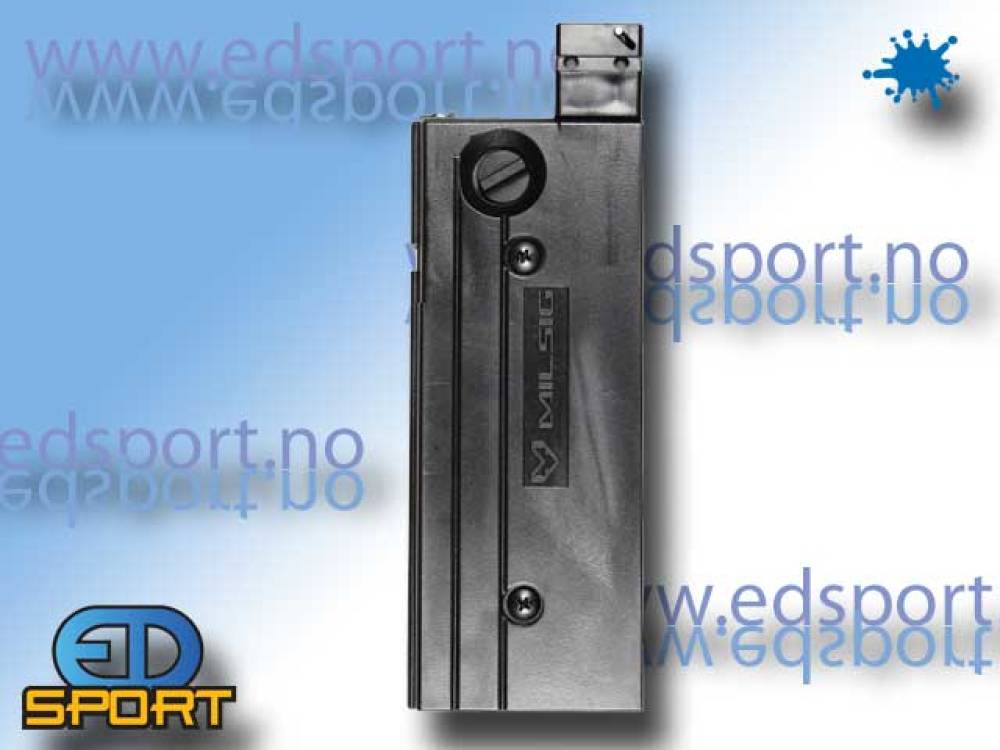 10 skudds magasin tilpasser samtlige Milsig markører som har underliggende magasinmating. Dette er for First Strike kuler. Square Head innfesting