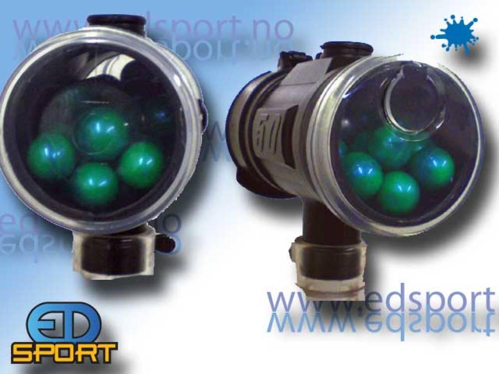 Magasin med plass til ca. 50 ball. Kan åpnes i begge ender. Ypperlig for deg som foretrekker å spille med ballbegrensning. Kommer med to ekstra bakre lokk