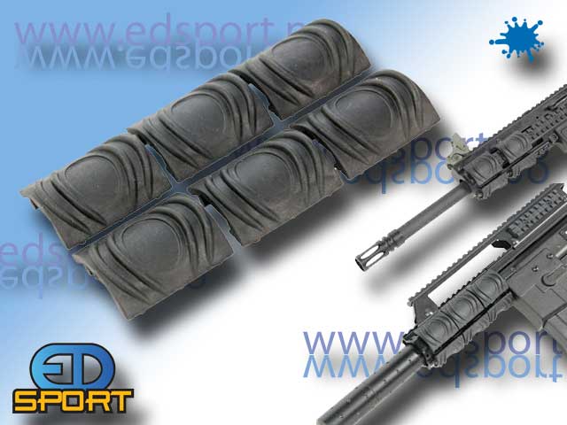 Beskytt hender utstyr og mil-spec Rail.System skinner med Ergonomisk RIS Rail deksel Åpne rail er ubehagelig å holde i og kan skade på utstyret. De ergonomiske rail dekslene er laget av gummi materiale som henger tett på railsen. De gir også en god gripeflate selv når det er vått eller gjørmete. Med flere korte lengder kan du dekke hver bit rail skinner.