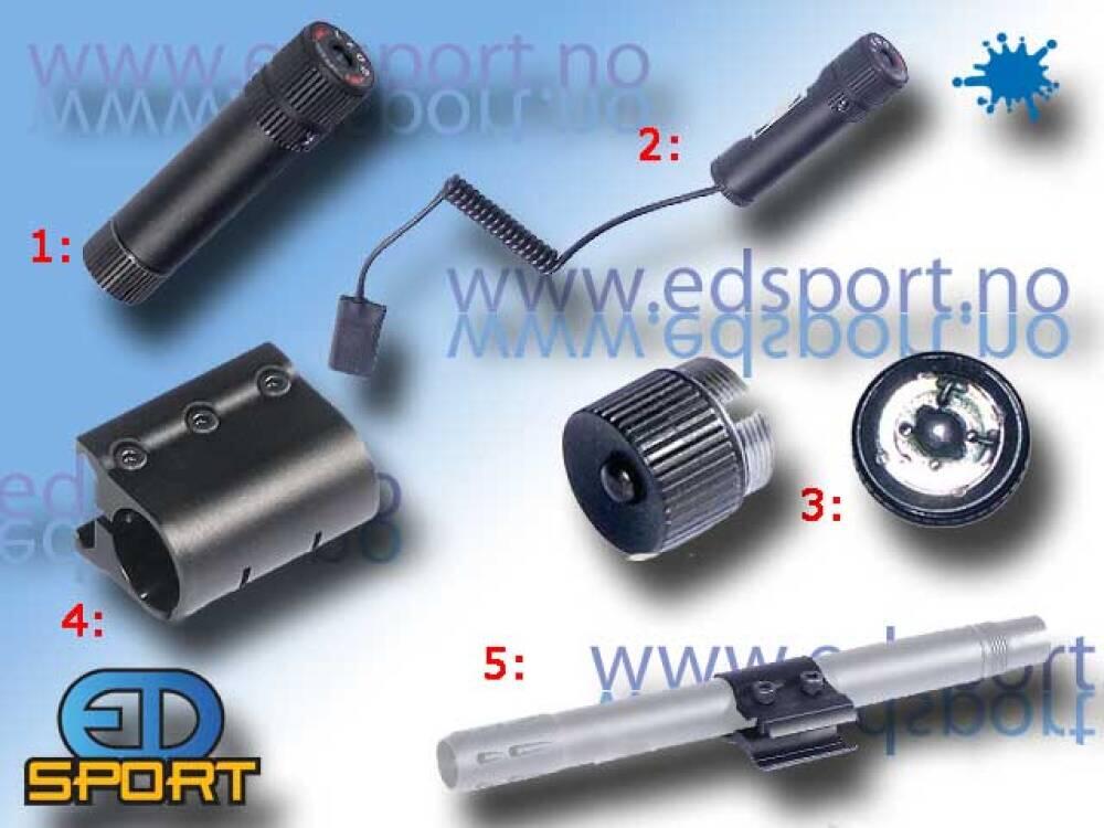 Dette er et «proff lasersikte». Sammen med sikte følger det med 6 ulike tilbehør – som lar deg tilpasse monteringen som du ønsker. —Diameter: 21 mmOmkrets: 628 mmLengde: 70 mm