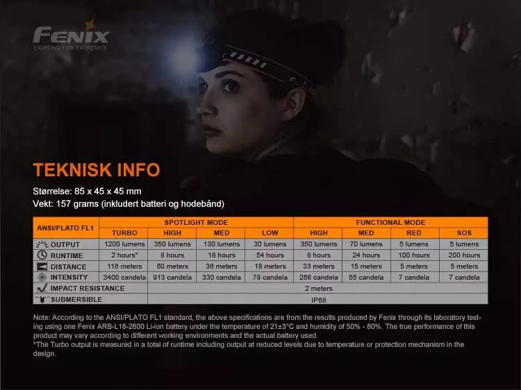 • 1200 lumen maksimal effekt 116 meter maksimal rekkevidde.