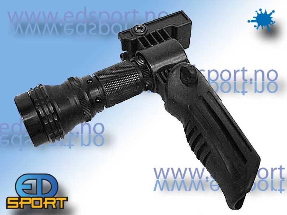 En rå og solid kombinasjon mellom LED lykt og praktisk grep. Monteres lett på alle 20mm rail. Passer supert på f.eks. TPX pistolen eller hvilken som helst annen utrustning.