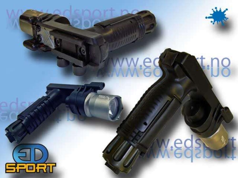En rå og solid kombinasjon mellom LED lykt og praktisk grep. Monteres lett på alle 20mm rail